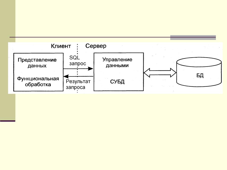 Для общения используется специальный язык запросов SQL (по сети передается лишь текст запроса).