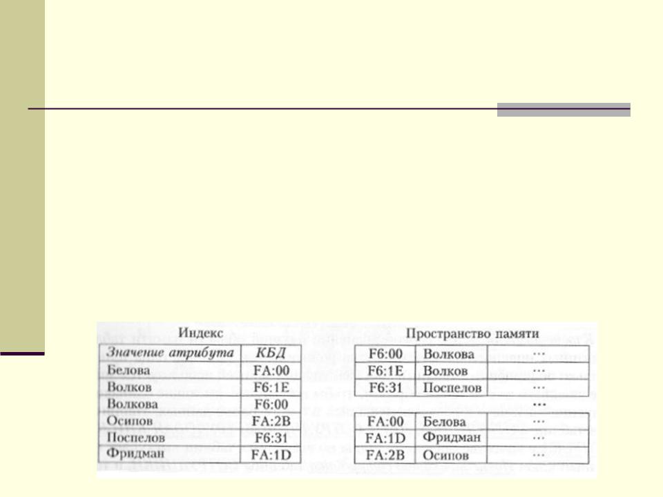 Индекс – это структура, которая определяет соответствие значения ключа записи (атрибута или группы атрибутов) и местоположения этой записи – КБД .