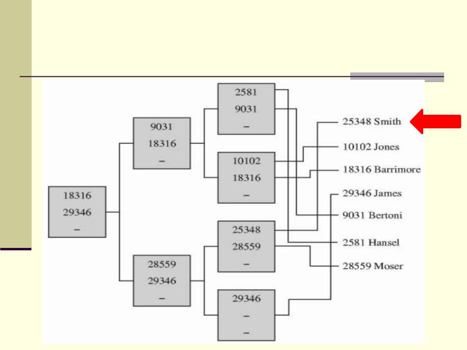 В корневом узле таким значением будет 29346, поэтому переходим на промежуточный узел, связанный с этим значением.