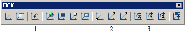 Для зручності роботи з координатами передбачений ряд інструментів, що дозволяють перемістити, обернути або створити власну призначену для користувача систему координат (ПСК). Для цього існують команди, представлені на панелі «ПСК» (мал. 2.3)