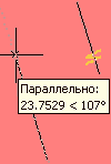 Прив'язка до напряму, що є паралельним для вибраного графічного об'єкту. При цьому в підказці відображається інформація про даний напрям в відносних полярних координатах. |