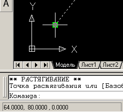 Щоб графічний курсор гарантований потрапив в характерну точку виділеного графічного об'єкту, існує механізм «приклеювання», тобто при знаходженні в околиці маркера точки, курсор відчутно прилипає до неї на деякий час, доки користувач не зсуне мишу достатньо сильно убік. У цей момент в рядку стану можна побачити координати цієї точки, а характерна точка підсвітиться зеленим квадратиком (див. мал. 2.2)