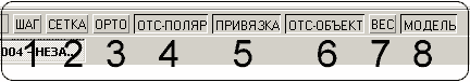 Для контролю над інструментами забезпечення точності креслення в AutoCAD існують елементи управління типу «кнопка», що знаходяться в рядку стану в нижній частині екрану (див. мал. 2.5).