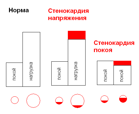В покое, когда сила и частота сердечных сокращений минимальны, коронарные артерии спазмированы и объемная скорость коронарного кровотока (ОСКК) наименьшая. Когда человек выполняет физическую нагрузку или переживает эмоциональное возбуждение существенно возрастают сила и частота сердечных сокращений, что приводит к расслаблению коронарных артерий и увеличению ОСКК.