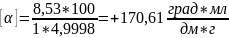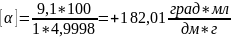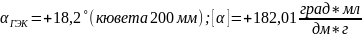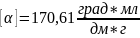 где α – измеренный угол вращения оптической плоскости испытуемого раствора, в градусах;
