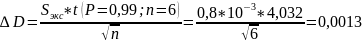 при стандартном отклонении Sэкс=0,8*10-3.