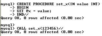 Рассмотрим хранимые процедуры с параметрами. Создадим и вызовем процедуру, которая присваивает пользовательской переменной @х новое значение: