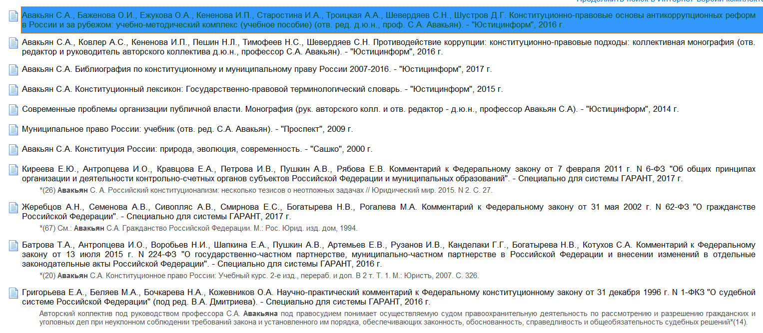 Найдите статьи С.А. Авакьяна в периодических изданиях, размещенных в системе ГАРАНТ. Сколько документов в полученном списке?
