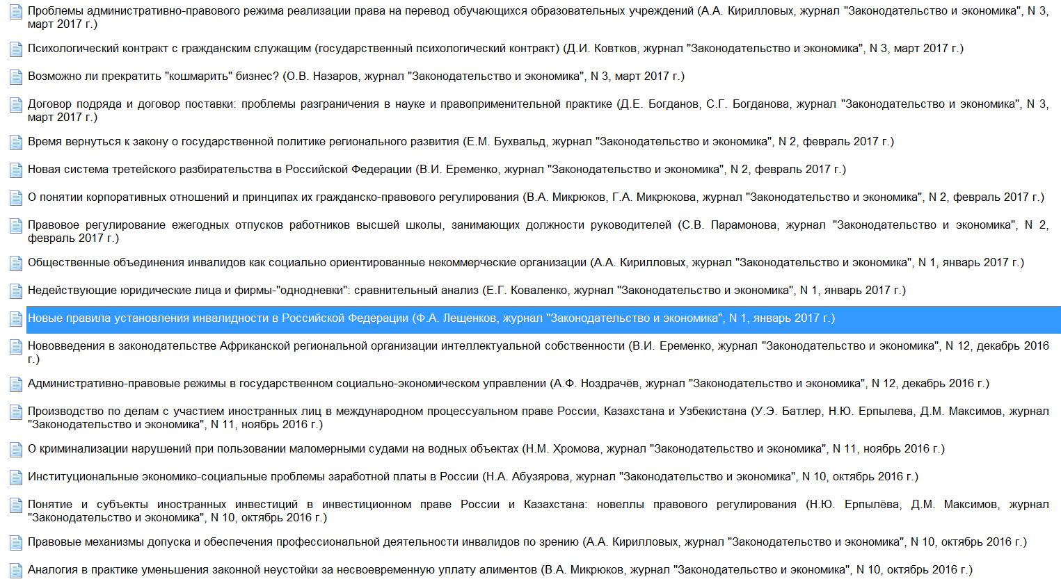 Найдите статьи, опубликованные в журнале «Законодательство и экономика» в январском номере текущего года. Сколько их?