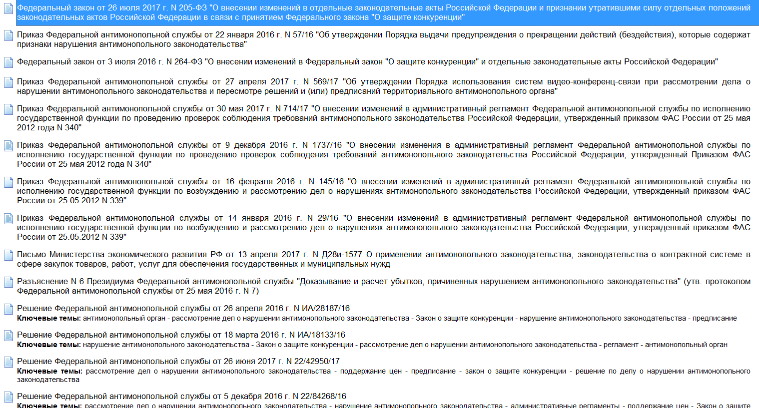 Сделать подборку материалов из периодических изданий по теме «Антимонопольное законодательство», вышедших с марта 2016 года по настоящее время. Сколько документов в полученном списке?