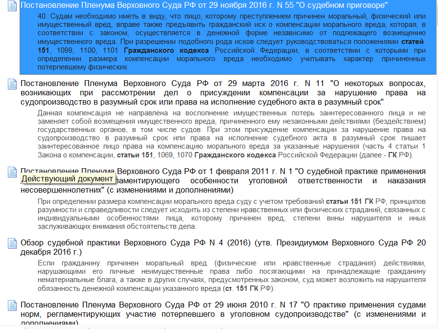 Постройте список материалов судебной практики к статье 151 Гражданского кодекса Российской Федерации. Укажите количество документов в списке.