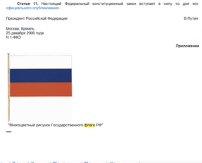 Найдите изображение флага Российской Федерации. Укажите реквизиты найденного документа.