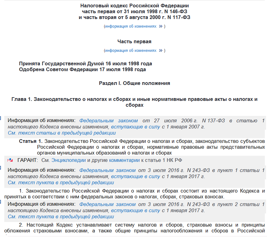 Сколько редакций у налогового кодекса Российской Федерации? Сколько статей в данном кодексе?