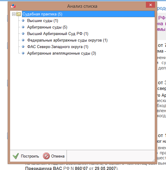 Найдите постановление Президиума Высшего Арбитражного суда РФ от 29 мая 2007 г. № 860/07. Используя вкладку Похожие документы, постройте список судебной практики по аналогичному вопросу. Сколько документов в списке?