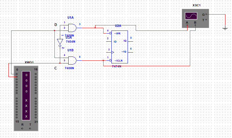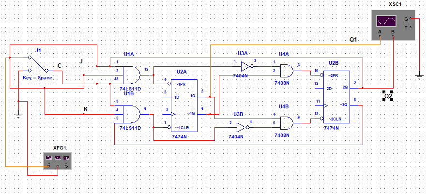 1. У програмі Multisim дослідити роботу RS-, D- і JK-тригера, записати таблицю істинності, відобразити логічні схеми, осцилограми.