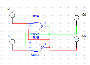 1. R-S тригери є симетричною структурою, що складається з двох логічних елементів АБО–НЕ або І-НЕ, охоплених перехресним позитивним зворотним зв'язком. Тригер на елементах І-НЕ, зібраний у програмі Multisim, показаний на рис.1.