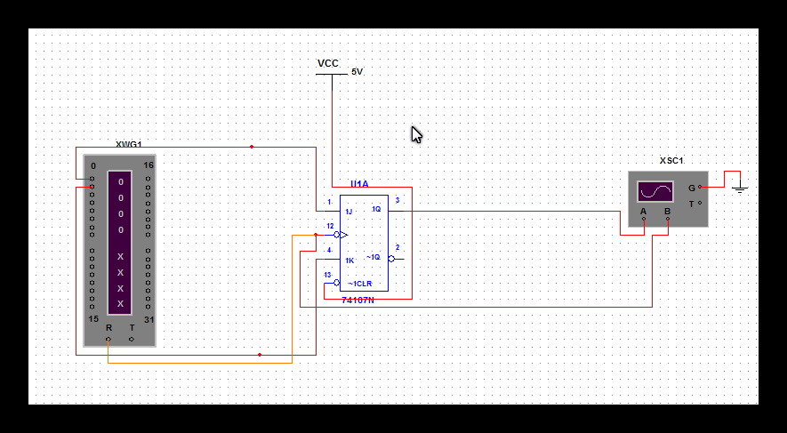 Схема дослідження J-K тригера у програмі Multisim представлена на рис.6,7.