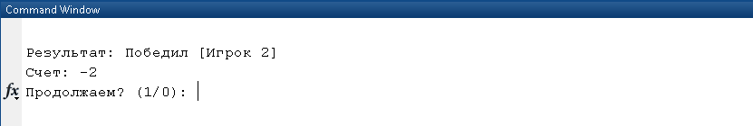 fprintf('\nРезультат: %s\nСчет: %d\n', win, AV-BV);