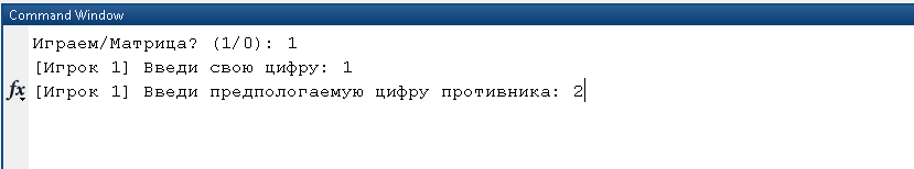 A(2) = input('[Игрок 1] Введи предпологаемую цифру противника: ');