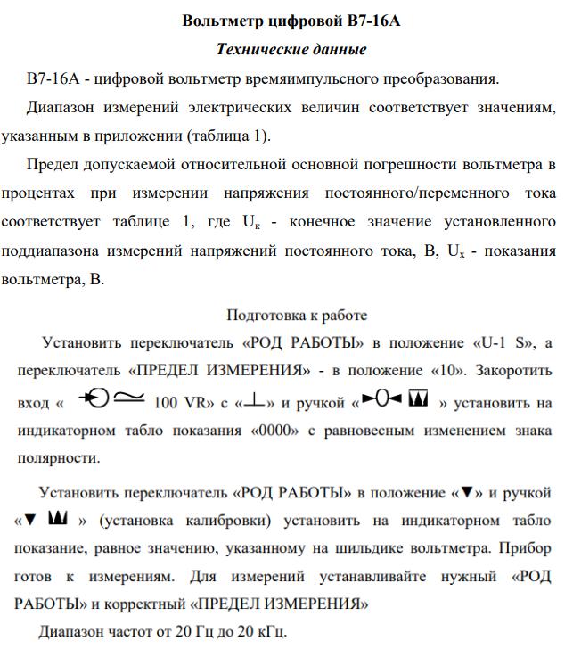 Рисунок 1. Технические данные цифрового вольтметра B7-16A