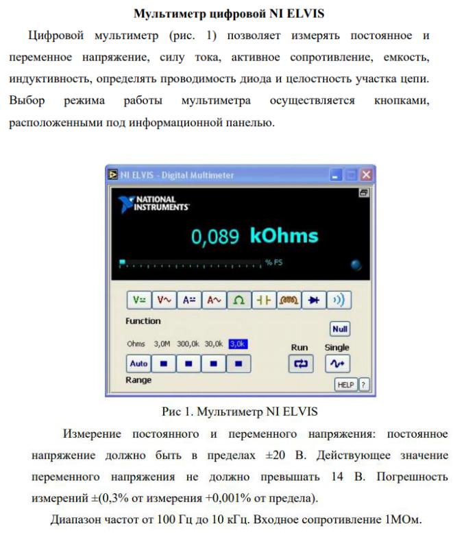 Рисунок 2. Технические данные цифрового мультиметра NI ELVIS