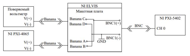 Соберем схему поверки вольтметра на постоянном токе (Рисунок 3).