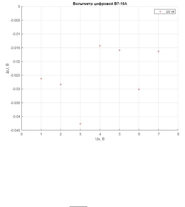 По результатам измерений для каждой отметки шкалы определим основную абсолютную погрешность вольтметра (1):