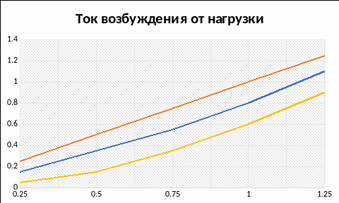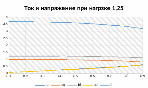 При увеличении cosφ происходит уменьшении составляющих токов if и id, но возрастает iq, а также составляющая напряжения uq уменьшается, а ud возрастает.