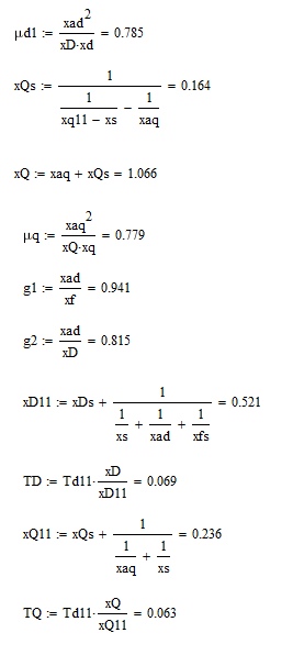 Расчет численных величин коэффициентов связи и постоянных времени полной системы уравнений судового синхронного генератора и разработка расчетной математической модели для построения статических характеристик судового синхронного генератора.