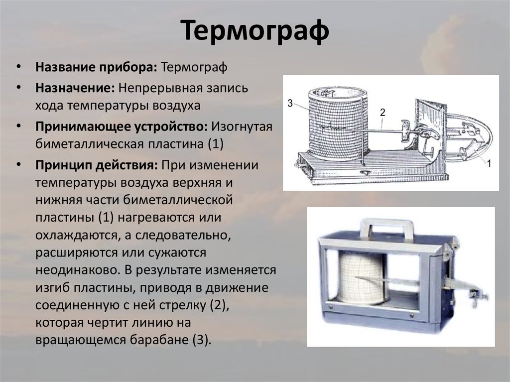 Изменение температуры воздуха в артпогребе вызывает расширение или сжатие биметаллической пластинки, от чего она будет изменять свою кривизну.