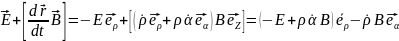Запишем выражения для проекций векторов скорости и ускорения в цилиндрической системе координат. Для простоты положим, что электроны покидают катод с нулевой начальной скоростью. Тогда их траектории будут лежать в плоскостях z = const, т.е. скорость и ускорение будут иметь только ρ и α- компоненты и не иметь z–компоненты.