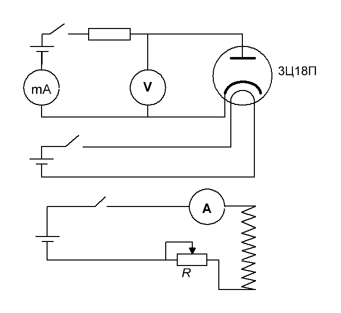 Оборудование: соленоид с вакуумным диодом, блоки питания, вольтметр, миллиамперметр, реостат.