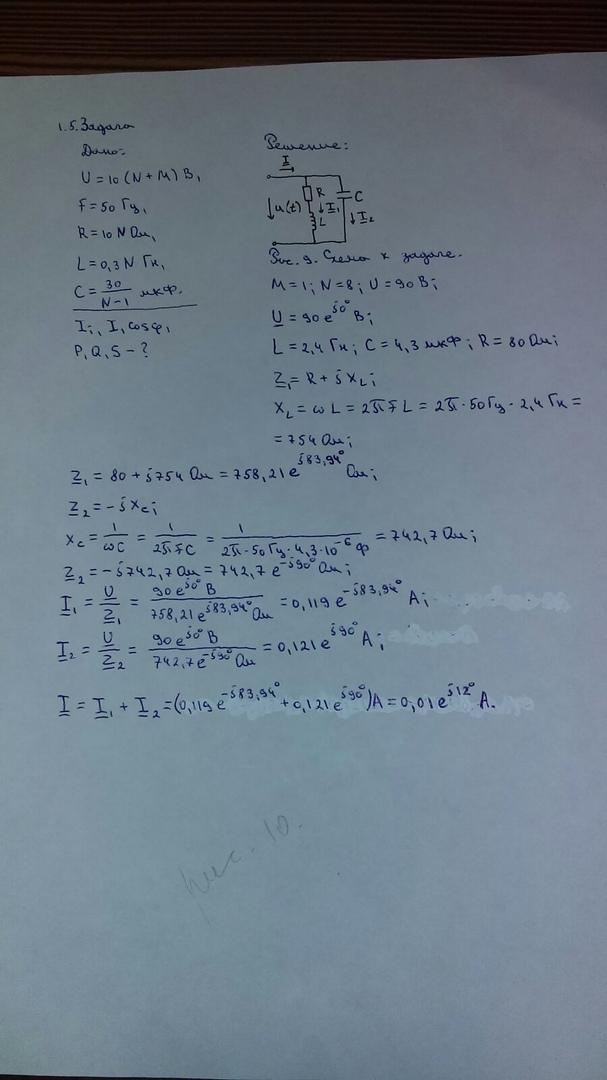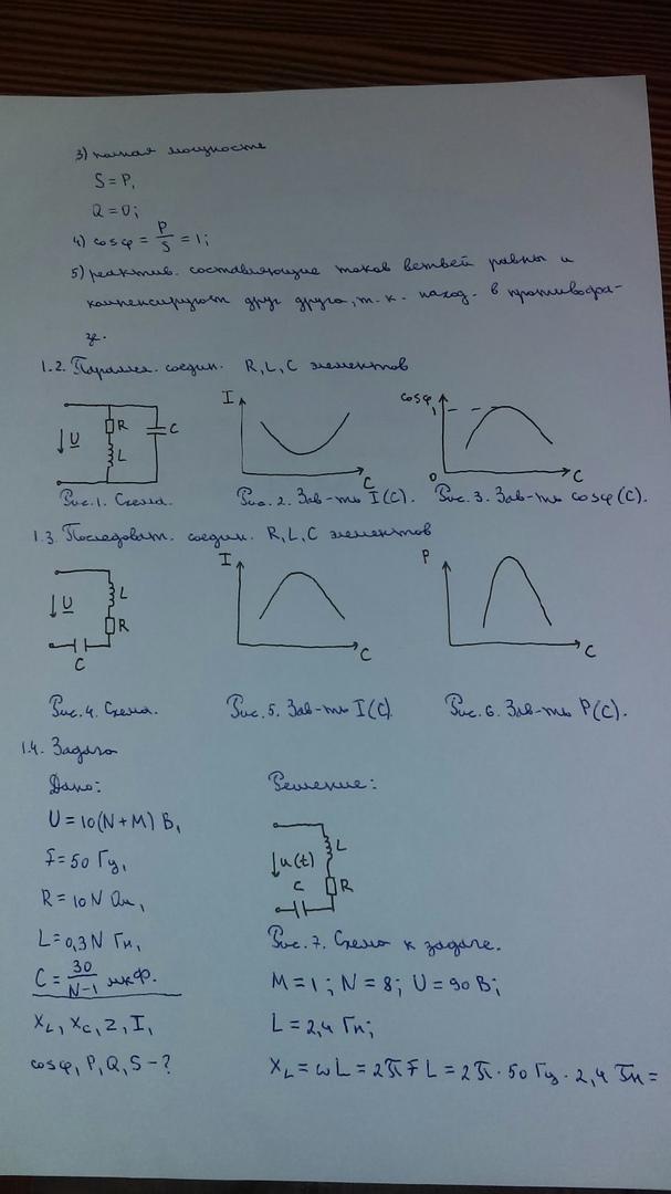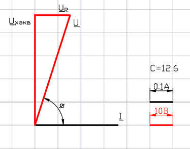 Рис. 11. Схема с последовательным соединением R,L,C элементов.