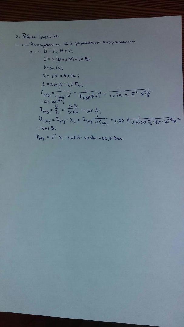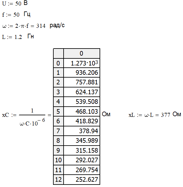 Меняя значение емкости в диапазоне 0.3Срез – 1.5 Срез, измеряем значения тока в цепи, напряжения на катушке и конденсаторе.