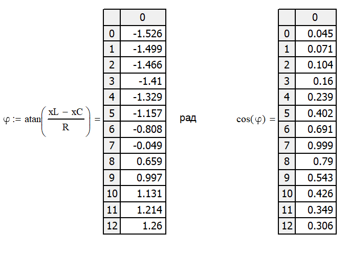 Рис. 17. Расчет cos(φ).