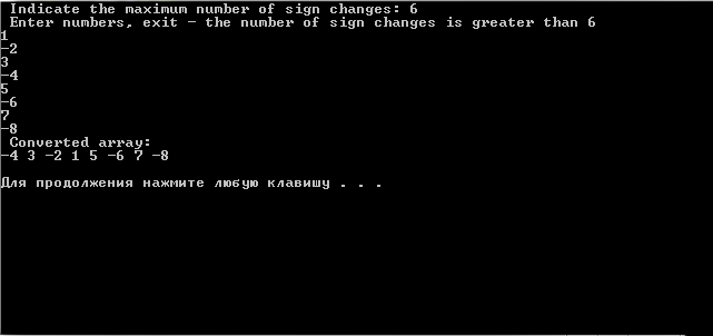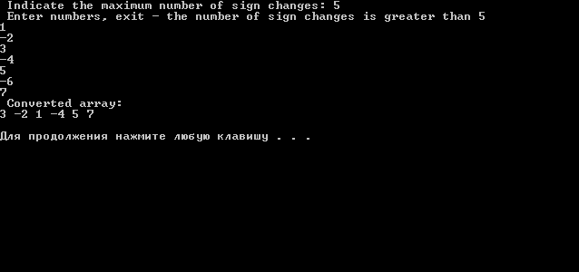 Исходные данные: 6; 1, -2, 3, -4, 5, -6, 7
