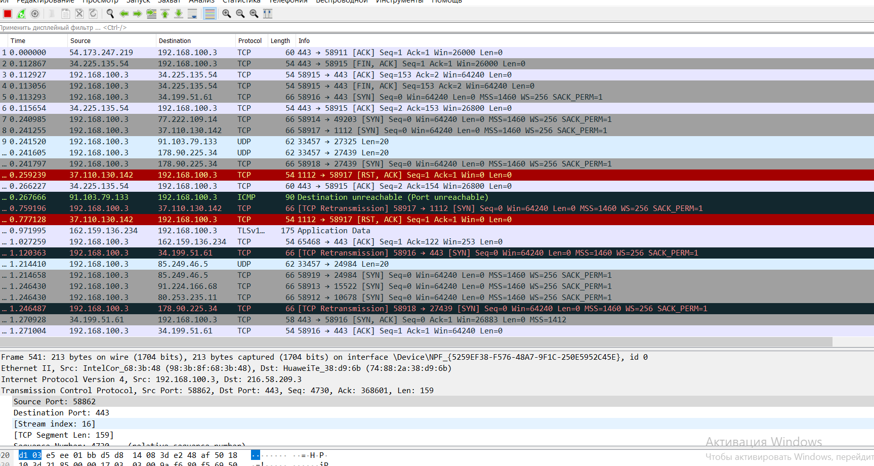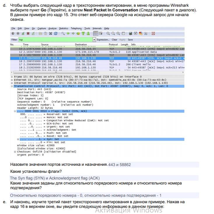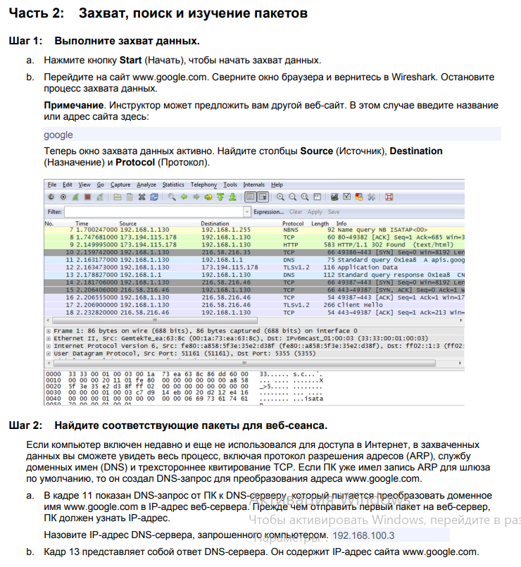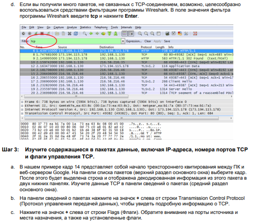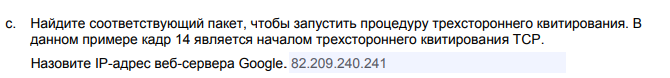 Далее нужно было найти IP-адрес веб-сервера Google. Для этого нужно зайти в Google и перейти в программу WireSark и найти нам адрес Google.