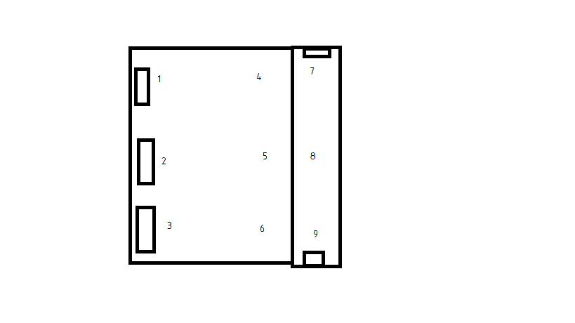 1 Начертить схему помещения (лаборатории) и изобразить на ней несколько точек замера освещенности. При боковом освещении они должны располагаться на линии пересечения вертикальной плоскости характерного разреза помещения и горизонтальной плоскости. находящейся на высоте условной рабочей поверхности (в лабораторных условиях на уровне столов). Точки намечаются на расстоянии 1,2‚3...м от оконного проема на рабочих местах.