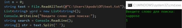 string text = File.ReadAllText(@"C:\Users\kpodo\ОП\text.txt"); List<string> word = new List<string>();