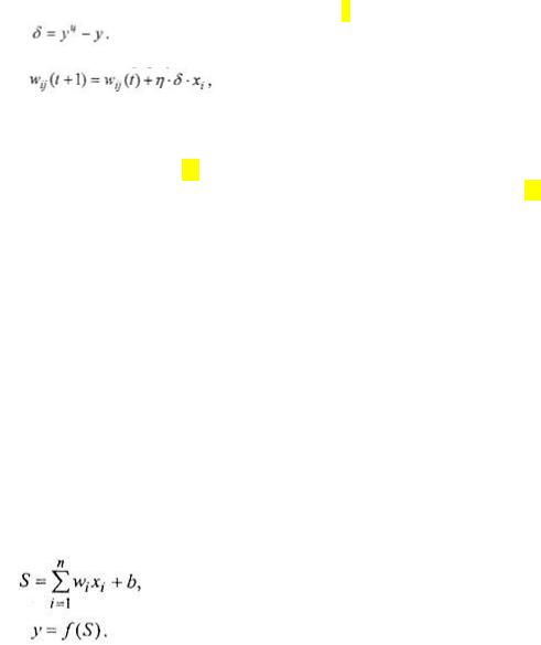 Очевидно, що, якщо уц > у, вагові коефіцієнти будуть збільшені і тим самим зменшать помилку. Інакше вони будуть зменшені, і у теж зменшиться, наближаючись до уц.