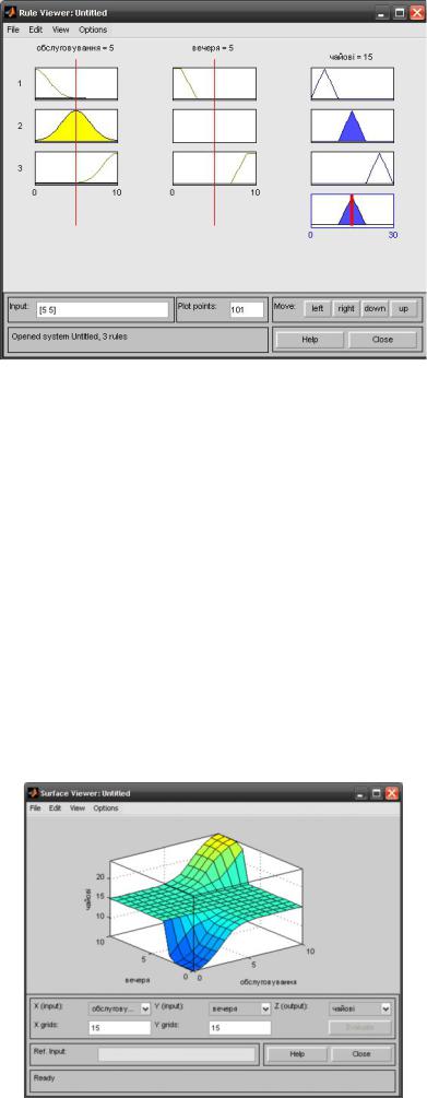 Графічний інтерфейс програми проглядання поверхні нечіткого виведення для розробле нечіткої моделі зображений на мал. 9.