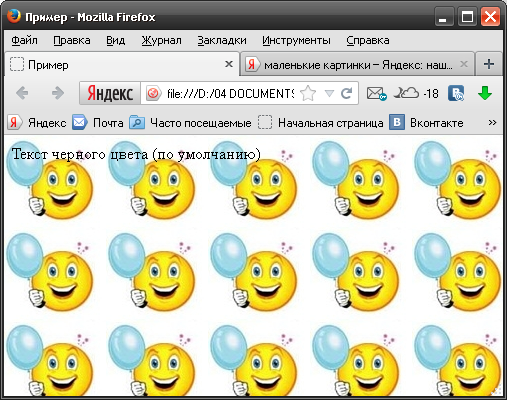 <head|> <title>Пример</title> <style| type="text/css"> body| { background-image:url|(smile.png) } </style> </head> <body|> <p>Текст| чорного кольору (за умовчанням) </p> </body> |