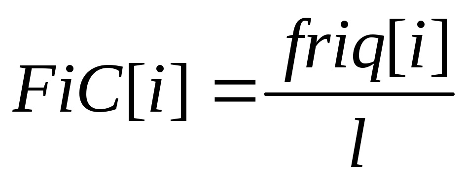 в) нормувати частоти символів, обчислені в пункті 2(a), результат помістити в масив FiC, тобто