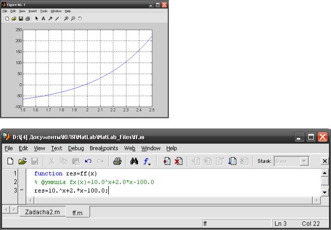 X = fzero ( '10.^x + 2.*x - 100.0', 2)