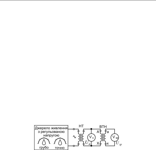 Рис. 5.6. Схема метрологічної перевірки вольтметрів змінного струму з межею вимірювання, що перевищує U к,Vзр або 1000 В з використанням ВТН