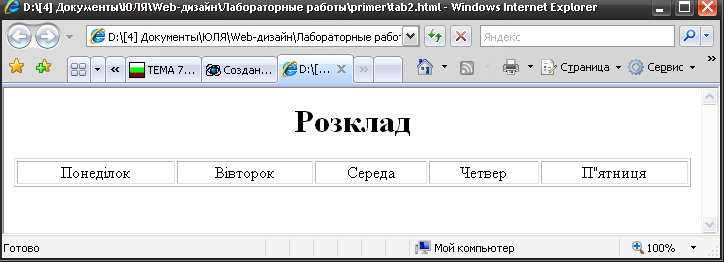 Створити новий HTML-документ| - rozklad_name|.htm з розкладом занять.