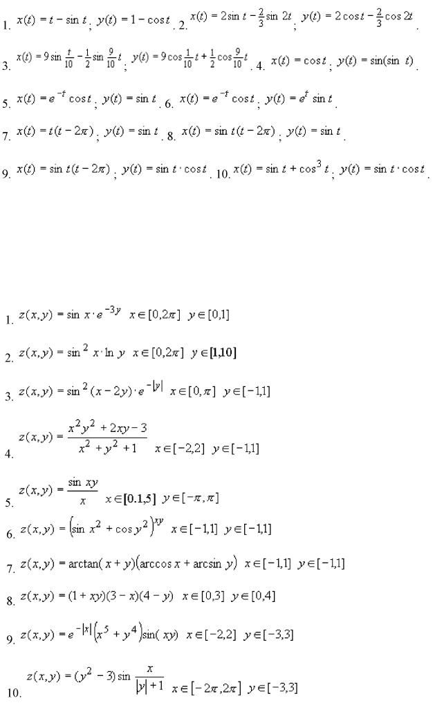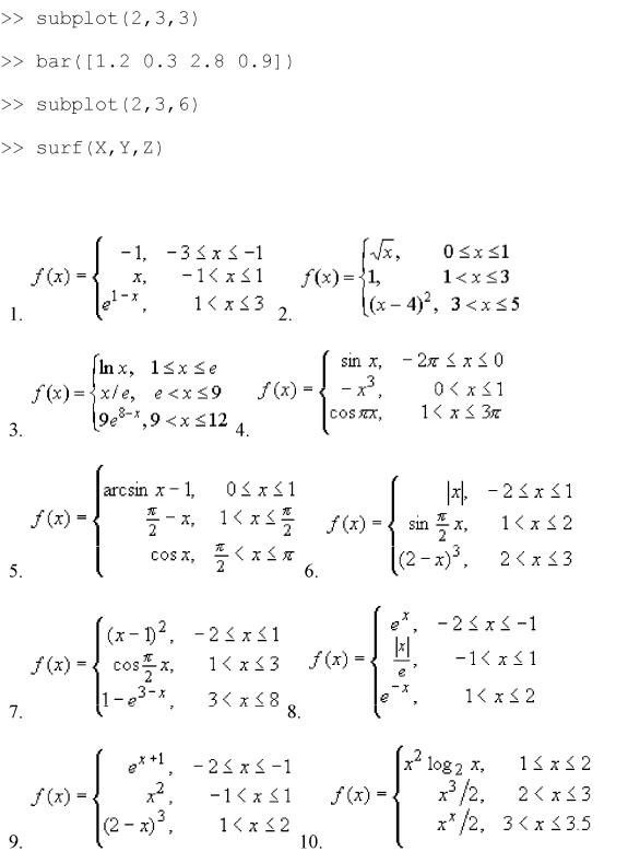 MatLab надає цілий набір графічних функцій для візуалізації функцій два змінних, серед них: