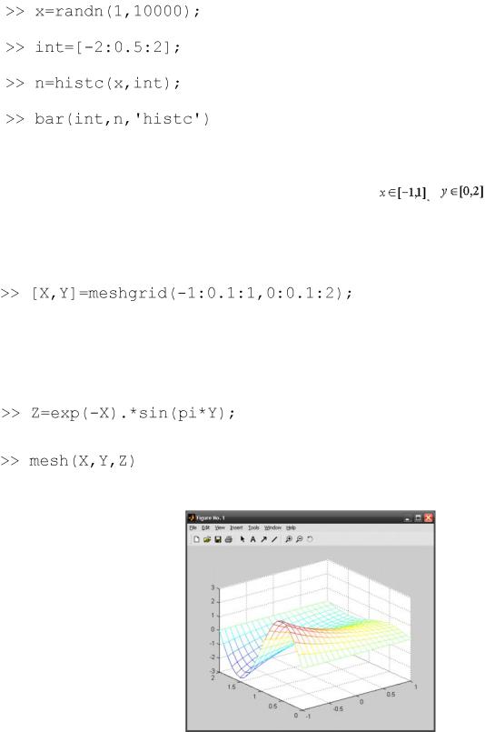 використовуватимуться для обчислення значень функції. Для генерації сітки передбачена функція meshgrid, що викликається від двох вхідних аргументів— векторів, задаючих розбиття по осях x і у. Функція meshgrid повертає два вихідних аргументу, що є матрицями.