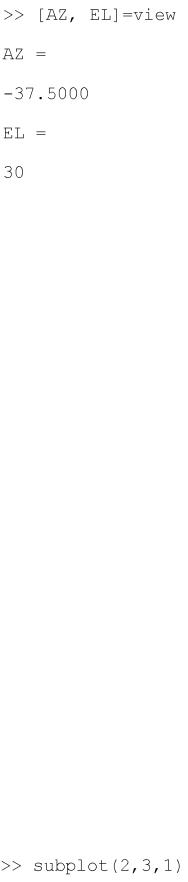 Оглянути поверхню з усіх боків дозволяє функціяview. Виклик функції view з двома вихідними аргументами і без вхідних дає можливість визначити поточне положення спостерігача (кути виводяться в градусах):