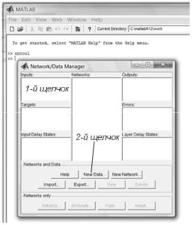 Виконання команди приведе до відкриття вікна створення нейронної мережі Network/Data Manager.